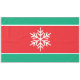 Dieses festliche saisonale Design zeichnet sich durch eine weiße nordische Schneeflocke aus, die in hellen Urlaubsszenen rot, weiß und grün blau an den Kanten zentriert ist.
