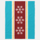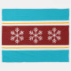 This festive seasonal design features triple white snowflakes centered within deep red, white, golden yellow, and azure blue stylish alpine stripes.