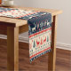 This pretty Holiday table runner features a Nordic style pattern in colors of creamy light tan, dark blue, and bright autumn orange. Included in the pattern are silhouette reindeer, trees, and snowflakes. Makes any Christmas table bright and festive!
