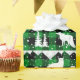Ein elegantes, neutrales Urlaubspapier mit einem skandinavischen Wintertiermuster in Weiß auf einem grünen und schwarzen Büffel kariertem Hintergrund.