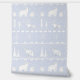 Ein skurriles, isländisch-nordisches Pullover-Muster in Weiß mit Wintertieren wie einer Eisbärenfamilie, dem arktischen Fuchs, Rentieren, Waldbäumen, Bergen, Sternen und fallendem Schnee auf festem Hintergrund eines leicht staubigen Maulbeerblau lila.