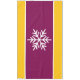 Dieses festliche saisonale Design zeichnet sich durch eine weiße nordische Schneeflocke aus, die in bordeauxroten, weißen und antiken gelben Randstreifen zentriert ist.