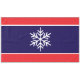 Dieses festliche saisonale Design zeichnet sich durch eine weiße nordische Schneeflocke aus, die sich in blau, weiß und leuchtend roten Kantenstreifen zentriert.