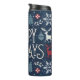 Elegant Scandinavian-inspired "Happy Holidays" lettering integrated into a symmetrical folk-art pattern