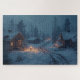 Every element of this puzzle is designed with ultra-detailed texture work, from snow-covered rooftops and wooden timber walls to softly drifting snowflakes and glowing village lights reflecting across icy ground. The layered lighting and intricate village layout provide a satisfying puzzle challenge while producing a stunning finished image perfect for display.