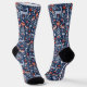 Diese hübschen Socken eignen sich perfekt für die Feiertagssaison, können aber auch während der ganzen Wintersaison gut durchlaufen. Sie zeichnen sich durch ein hübsches Muster in sanften Farbtönen aus Rose, Rosa und Blau, aus. Die Bilder sind von Hirschen, Vögeln, Kaninchen, Blätter, Bäumen und Blume. Alles ist skandinavischer Boho-Stil und auf einem marineblau blauen Hintergrund aufgestellt.