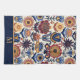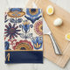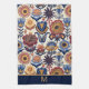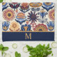 Hier ist ein attraktives Küchentücher mit einem bunten Boho Stil Nordic Blume Design in den Tönen Blau, Zimtbraun und Gold. Unten ist eine passende blaue Grenze mit Ihrem Monogramm in Gold. Hell und bunt! Sehen Sie sich die passenden Wohngestaltungen in unserem Shop an.