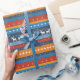 Dieses lebendige Weihnachtsmuster präsentiert eine spielerische Mischung aus kühnen Farben wie Rot, Blau, Orange und Marine, gepaart mit klassischen Urlaubssymbole. Weiße Rentierreihen im Pixelstil, zarte Schneeflocken, festliche Ornamente und dekorative geometrische Motive schaffen eine fröhliche und gemütliche Winterästhetik. Die lebhafte Farbpalette und die nordisch-inspirierte Gestaltung machen es zu einer hervorragenden Wahl, um den Feiertagsszauber zu vermitteln.