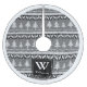 Monochromatischer Weihnachtsbaumrock in Schwarz-Weiß-Tönen. Es verfügt über einen nordischen Pullover mit inspiriertem Tannenmuster, einen weißen Rahmen und ein dekoratives schwarzes Quadrat mit einem personalisierten, weißen Monogramm-Buchstaben und einem vollständigen Familiennamen.