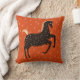 Dieses attraktive und unverwechselbare Kissen hat ein prächtiges schwarzes Pony mit einem nordischen Goldmuster. Das Bild wird auf einem roten und goldenen Muster platziert. Die Rückseite des Kopfkissens weist das gleiche rote und goldene Muster auf, ohne das Pferdebild.
