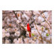 Ein Kardinal aus dem Norden (Cardinalis cardinalis) steht auf einem Baumzweig mit rosa Kirschblüten im Hintergrund.