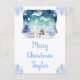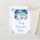 Diese niedliche und skurrile Weihnachtskarte kann mit Ihrem Namen oder Titel personalisiert werden, wie z.B. Mutter, Tochter, Enkelin, Nichte, Freund etc. Es zeigt eine winterliche Aquarelllandschaft mit bezaubernden arktischen Tieren wie Eisbär, Pinguin, Katze, Eule, Siegel und Elch. Im Hintergrund sind die Nordlichter, schneebedeckte Berge und Bäume. Der Text kombiniert handgeschriebene Skripte mit serifenlosen Schriftart für ein stilvolles und modernes Design. Fallende Schneeflocken und wunderschöne blaue Blumenarrangements geben dem Winter ein Gefühl.