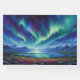 Die Nordlichter, die auf einem gebirgigen Tal leuchten