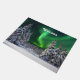 Nordlichter mit grünen Farbtönen und schneebedeckten Bäumen. 100% anpassbar. Klicken Sie auf die Schaltfläche CUSTOMIZE, um einen der Schriftart oder Grafiken hinzuzufügen, zu verschieben, zu löschen, zu verändern oder zu verändern.