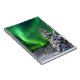 Nordlichter mit grünen Farbtönen und schneebedeckten Bäumen. 100% anpassbar. Klicken Sie auf die Schaltfläche CUSTOMIZE, um einen der Schriftart oder Grafiken hinzuzufügen, zu verschieben, zu löschen, zu verändern oder zu verändern.