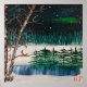 Ein Gemälde von Northern Lights und ein eisiger Teich.