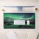 Grüne Nordlichter (Aurora borealis) im arktischen Nachthimmel über Nordnorwegen, Skandinavien. Die Lichter reflektieren auf dem Wasser eines Fjords im Vordergrund. Lage: Storfjorden, Skibotn, eineinhalb Stunden Fahrt von der Stadt Tromso. Das Bild ist eine Zeitbelichtung von mehreren Sekunden.