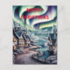 Nordlichter über einem bezaubernden Haus Weihnacht Postkarte