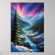 Die Himmel werden in einem atemberaubenden Spektakel lebendig, während die Nordlichter den Nachthimmel mit Farben der Verzauberung bemalt. Ein tiefgefrorenes Tal wird zur Bühne dieses kosmischen Tanzes, wo ein Eislaufen den Hügel hinabgleitet und der Sinfonie eine eigene Stimme verleiht. Das ätherische Meisterwerk der Natur weckt eine Geschichte von Staunen und Schönheit, während das Himmelslicht auf die eisige Umarmung der Erde trifft.