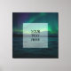 Die Magie der Nordlichter mit diesem atemberaubenden, individuell gestaltbaren Design erfassen. Dieses Kunstwerk besticht durch lebhafte grüne und lila Polarlichter über einem friedlichen Gewässer und einem silbernen Gebirge. Es verfügt über einen zentralen, halbtransparenten Platz, wo Sie Ihre eigene Botschaft vermitteln können. Dieses Design ist perfekt für personalisierte Geschenke, inspirierende Drucke oder individuelle Urlaubskarten geeignet und verbindet natürliche Schönheit mit Ihrer einzigartigen Stimme.