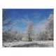 Ein leichter Schneefall hat eine weiße Beschichtung auf Gras, Bürsten und Bäumen verlassen. Der blaue Himmel fügt der Szene einen deutlichen Kontrast hinzu.