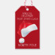 Niedliche Weihnachtsgeschenktafeln am Santa North Pole - oben auf den weißen Briefen liest man 'Special Delivery From Santa Claus'. Unten steht "Nordpol". Im Mittelpunkt steht ein roter Hut des Weihnachtsmanns. Auf heilig rotem, solidem Hintergrund, der in jede Farbe geändert werden kann. Dasselbe auf der Rückseite. Perfekte Weihnachtsmarken, um all diesen Weihnachtsgeschenken eine festliche Touch hinzuzufügen, bevor sie vom Weihnachtsmann per E-Mail zugeschickt oder unter dem Baum ausgeliefert werden. Stellen Sie sich den Ausdruck auf den Gesichtern der Kinder vor, wenn sie sehen, wie ihr Weihnachtspaket vom Weihnachtsmann kommt! Whimsical, Kinder Weihnachtsfeiertag Tags.