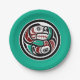 Kaufen Sie Ihr Party diese coolen Teller mit einem schönen Otter, der Lachs aus British Columbia, Kanada jagt. Der Hintergrund ist grün. Raubtier und Raubtier. Das ist das Thema meines neuen Haida-Gestaltungskreuzes, der Lachs zeichne. Ich bin mir nicht sicher, ob Otter Lachs essen, aber ich mag die Idee, einen Raubtier und eine Beute in ein Yin- und Yang-Symbol zu stecken. Komplementieren sich Beute und Räuber nicht? Aufgrund meiner Familie in British Columbia, zum Beispiel Vancouver BC, war Haida Formline Kunst Teil meines Lebens. Die Nordwestküste des Pazifik ist ein wunderschöner Ort, wo ich ein paar glückliche Ferien verbrachte und vor ein paar Jahren beschloss ich, einige seiner einheimischen Kunst zu lernen. Formline ist eine indigene Kunst, die von den Menschen der ersten Nation an der Nordwestküste Nordamerikas gemacht wurde. Der Begriff Formmarke wird von Bill Holm erfunden. Wir verwenden das Wort seit 1965, aber die Kunst ist viele hundert Jahre alt. Die Idee ist, eine fließende, kontinuierliche Linie mit steigender und abnehmender Dicke zu schaffen. Wir bekommen Negativräume mit einer dominanten schwarzen Kontur. Die negativen Leerzeichen werden mit Formen oder Elementen vom Typ der Formulareinie gefüllt. Die Hauptformen sind ovoid's, U forms und S Formulare. Mit diesen Formen stellt der Künstler eine komplette Form-Linie zusammen.
