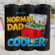 Diese humorvolle Grafik präsentiert "NORMAL VATER" in fett orangefarbenem Text, platziert über einem klassischen Rot cooler mit Eis und gekühlten Grün- und Gelbflaschen. Unten, das Wort "COOLER" in frostiger Blau, spiegelt perfekt die entspannte Atmosphäre wider. Dieses Design feiert den lässigen, lustigen Geist eines Vaters und seine wichtige Rolle beim behalt der Dinge cool.