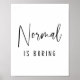 Dieses Design setzt sich zusammen aus dem Satz "Normal ist langweilig", einem Typografie-Plakat Wandkunst, die ein sauberes und modernes Design bietet, das perfekt für die Aufhellung und das Hinzufügen einer Persönlichkeit zu jedem Raum ist. Dieser hübsche Ausdruck kann durch das Hinzufügen eines eigenen Textes und das Ändern der Farbgebung weiter personalisiert werden. Dieses Design hat ein modernes Ambiente und würde in einem modernen Apartment oder Loft Platz gut aussehen.