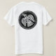 Kennzeichnet einen weißen Wikinger-Raben auf einem runden schwarzen Hintergrund, der wie ein Wikinger-Schild auf der Rückseite des Shirts aussieht. Auf Front ist die Tasche auch der Viking-Rabe.