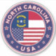 North Carolina Design mit Fahne von North Carolina und Fahne von United Staaten, abgerundete Form. North Carolina Autoaufkleber, North Carolina Gepäckaufkleber, North Carolina Reiseaufkleber,