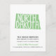 Teilen Sie Ihre neue Hausadresse mit Freunden und Familie mit schicken, bewegenden Ankündigungen, die eine Silhouette des Staat von NORTH DAKOTA mit moderner Typografie enthalten. Benutzen Sie die Felder für Ihr benutzerdefiniertes Intro, Familienname und Ihre neue Adresse. . Fügen Sie auf der Rückseite eine personalisierte Meldung hinzu. NORTH DAKOTA Gras grüne Karte Farbe ist vollständig veränderbar!!