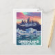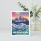 A stylized vintage travel poster illustration of the vast, Arctic wilderness of Northeast Greenland National Park, the world's largest national park. The scene captures a frozen fjord with towering, snow-capped mountains and prominent glaciers under a pale blue sky. In the foreground, a Muskox (a key species of the park) stands majestically against the ice and tundra. The bottom border displays the park's name in bold, colorful text.