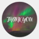 Danke, Nordlichter, Aurora Borealis Hochzeitsaufkleber. Nachthimmel, Sterne, Bäume klassische Rundaufkleber. Personalisieren Sie Ihre Namen und das Datum der Hochzeit.