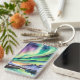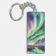 Dieser Schlüsselanhänger zeigt ein Aquarellbild der Nordlichter Islands.
