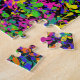 Die Spritzer sind fett und in heißen Rosa, Gelb, Orange, Kalkgrün, aquamarin und blau gehalten.
