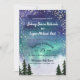 Romantische Nordlichter inspiriert Hochzeitseinladung in Blau-, lila- und Grüntönen mit hohen Bergkiefern und glitzerndem Sternenhimmel für eine Touch des Funkelns.