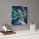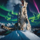 “Northern Sky Wanderer” – Snow Leopard Portrait. Against a sky streaked with dancing auroras, a snow leopard sits in quiet command atop a frozen summit. Though it belongs to southern mountains, here it becomes an otherworldly wanderer, impossibly at home in the shimmering night. The crisp air, glowing stars, and distant village lights merge into an enchanting tableau of wildness and mystery.