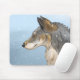 Kleine Schneeflocken fallen still um einen nordwestlichen Wolf.