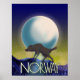 Norwegisches Wolf Poster druckt Kunst eines niedlichen, aber beängstigenden Wolfs, der vor einem schönen großen Vollmond spaziert.