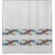 Traditioneller skandinavischer Volkskunstentwurf gemustert nach Norweger Rosemaling, einer Art dekorative künstlerische Malerei erfolgt in Norwegen und in den schwedischen, norwegischen und dänischen Häusern als Teil ihrer Gewohnheit der Herstellung der täglichen Gegenstände gesehen schön.  Der Entwurf hier wird auf einem hellblauen Duschvorhang gezeigt. Von den skandinavischen Geschenken.