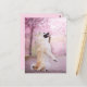 Ein schönes Foto eines norwegischen Buhunds in einem Kirschbaumpark. Eine Postkarte für alle, die Japan, Kirschblüten oder Hunde Lieben haben.