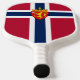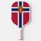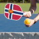 Stilisierte Flagge Norwegens mit dem Wappen überlagert und der Name des Landes oben - im Norwegischen.