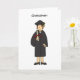 Ein Cartoon einer Dame mit einem Abschluss-Outfit und das Wort "Gratulerer", was auf Norwegisch "Glückwunsch" bedeutet.
