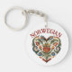 Dieser Schlüsselanhänger ist im norwegischen Rosemalstil gehalten und zeichnet sich durch ein Folk Art Heart Design aus. Oberhalb des Herzens steht Norwegisch in gebogenen roten Buchstaben. Die Farben sind rot, blau, grün und goldgelb.