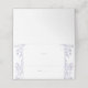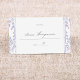 Dieses Hochzeitsdesign ist eine perfekte Mischung aus Eleganz und Klassik. Das Hauptmerkmal des Designs ist ein verzierter staubblauer Blumenrand auf weißem Hintergrund.