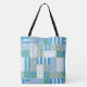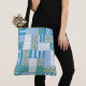 Eine sehr hübsche Tote-Tasche, mit einem Imitat im Landstil, Patchwork aus Blumen-, Polka-Dot-, Streifen- und Karo-Gingham-Mustern in Blau, Grün und Weiß. Als Teil der Posh und Painterly 'Morning Glory' Kollektion passt dieses Muster in jeden Tote Beutel und kann durch Drehen des Musters oder durch Ändern der Skala für ein ganz anderes Aussehen angepasst werden.