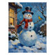 Nostalgic Happy Snowman with Bluebird Winter Scene Poster