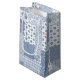 Eine schicke kleine Geschenktasche mit nostalgischen Imitaten Flickwerk aus Blumen-, Karo- und Polka-Dottern, in Indigo Blau und Weiß. Als Teil der Posh- und Painterly 'Indigo' Kollektion kann dieses Muster leicht an jedes Geschenktaschen angepasst werden.