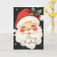 Diese niedliche Weihnachtskarte zeigt den zeitlosen Charme der Urlaubssaison mit einem nostalgischen Bild vom Gesicht des Weihnachtsmannes, einem wunderschönen Set vor einem schwarzen Hintergrund, der mit glänzenden goldenen Sternen bestreut ist. Das Kunstwerk ruft ein lustiges Gefühl von Staunen und Freude hervor. Im Inneren können Sie personalisieren, indem Sie eine herzliche Nachricht schreiben (oder die Nachricht verlassen, wie sie ist) und Ihren Namen hinzufügen, um personalisierte Beifall zu Ihren Lieben zu verbreiten. Ideal für diejenigen, die den klassischen Weihnachtsgeist lieben, ist diese Karte eine angenehme Art, Ihre festlichen Wünsche zu äußern.